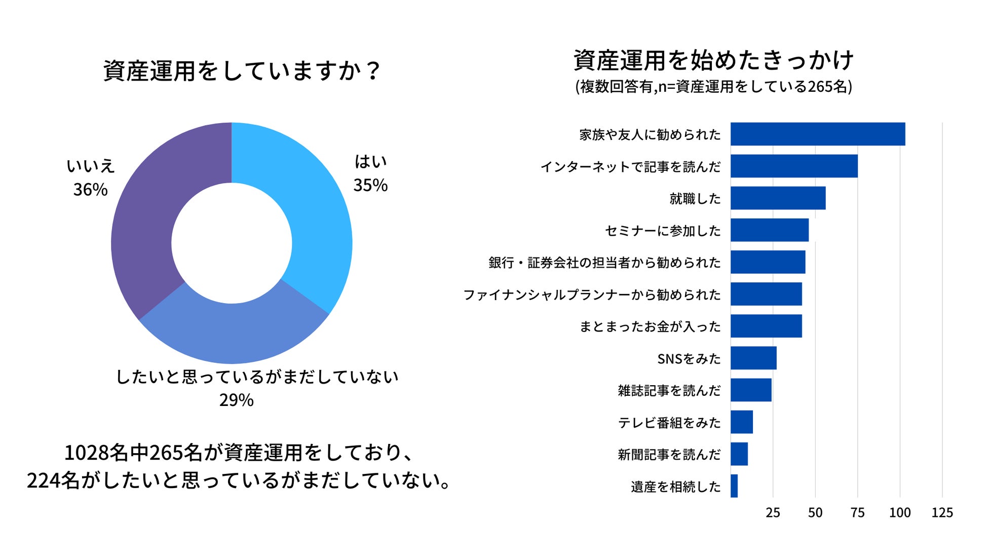 - 独身女性の35%は資産運用をしている。保険加入より慎重な結果に。