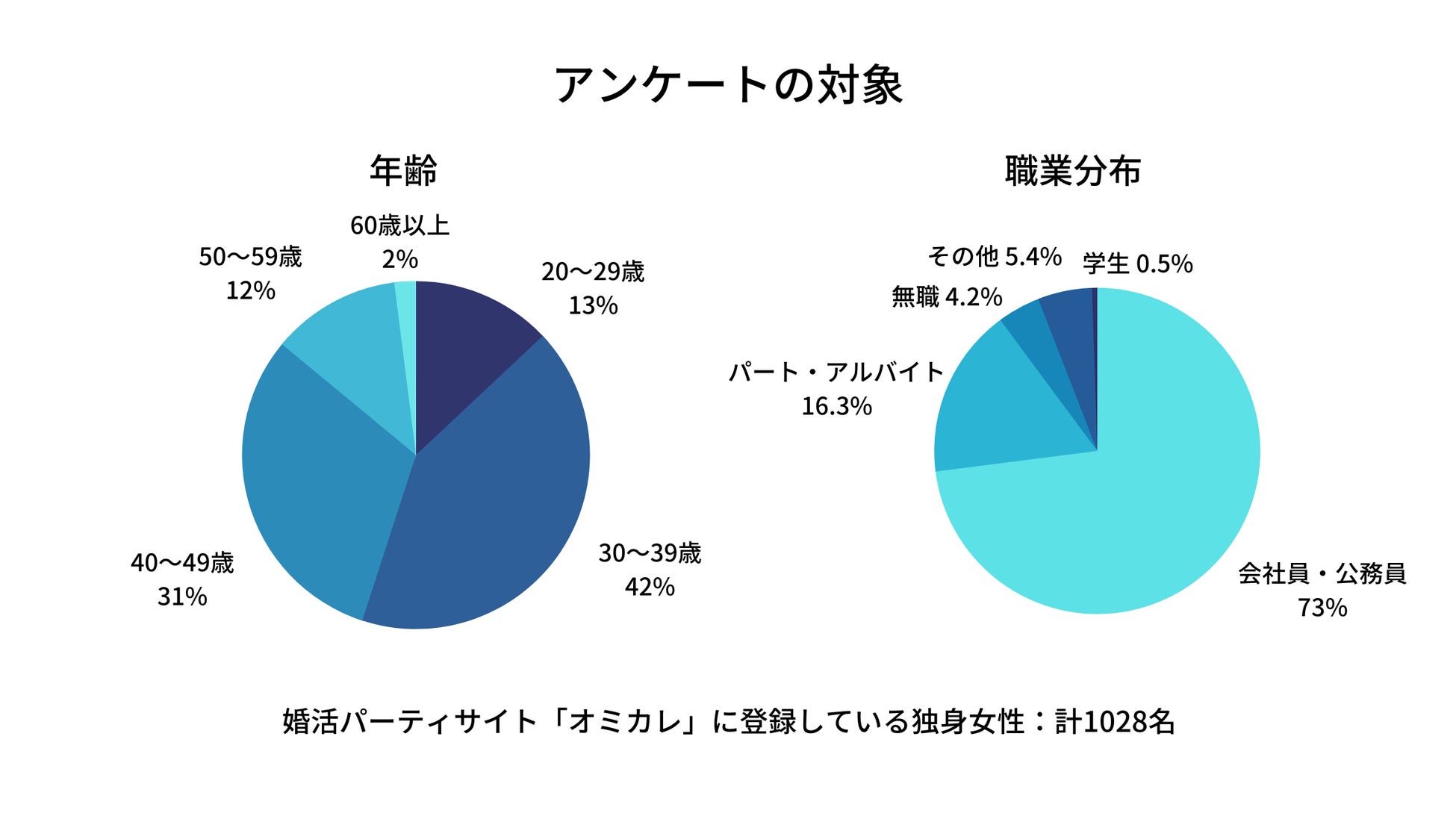 ・調査対象:婚活パーティサイト「オミカレ」に登録している独身女性20~60歳以上 計1028名