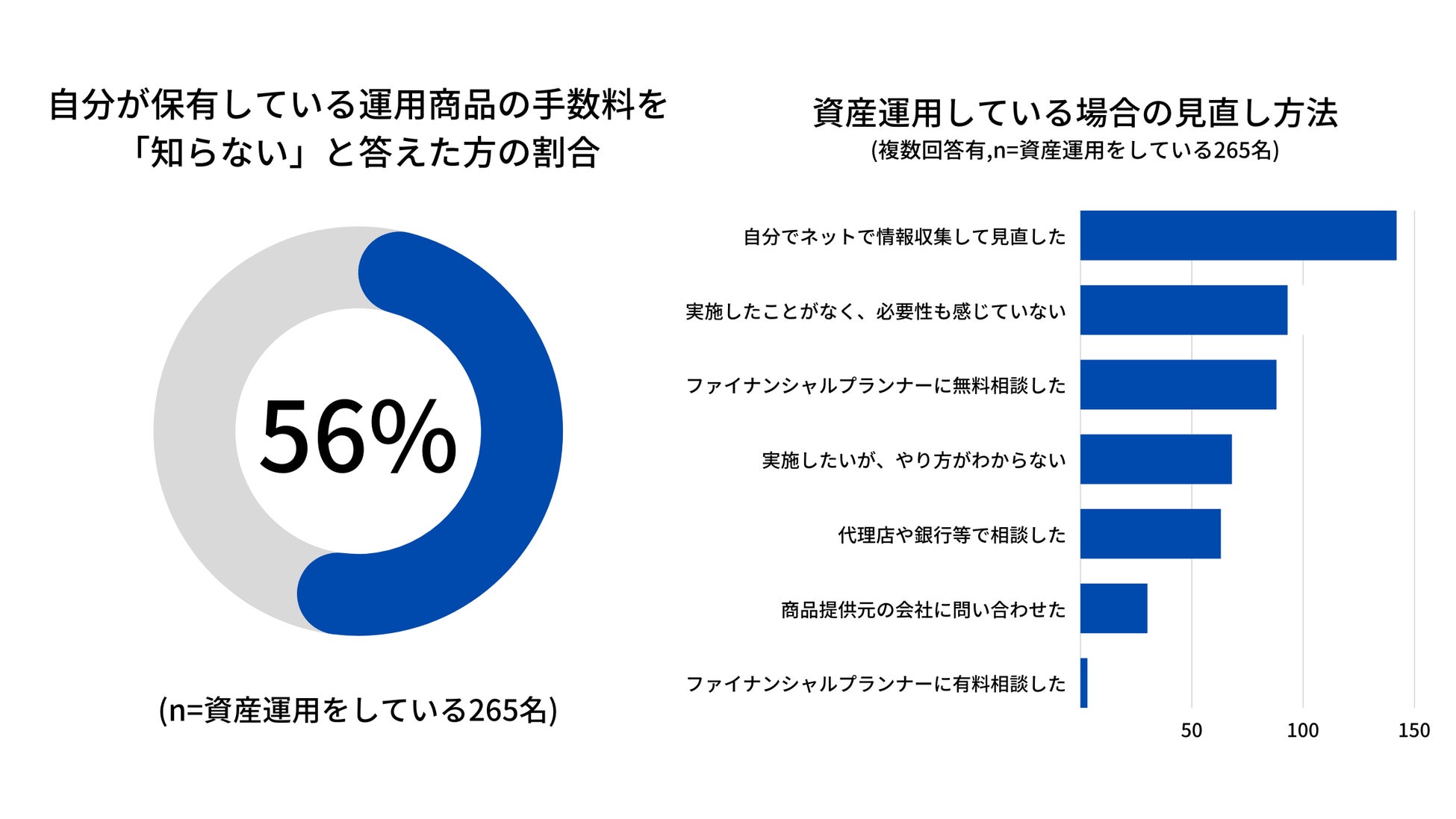 - 資産運用している人の半数以上は、運用商品の手数料を知らずに運用している。