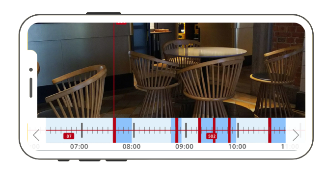 「ソラカメ」では、カメラの映像を24時間録画し、常時クラウドへ保存します。加えて、カメラが動きや音などの変化を検知したシーンだけを録画し、一覧表示するモーション検知機能も備えています。なお、これらの録画データはすべて、日本国内に保管されます。