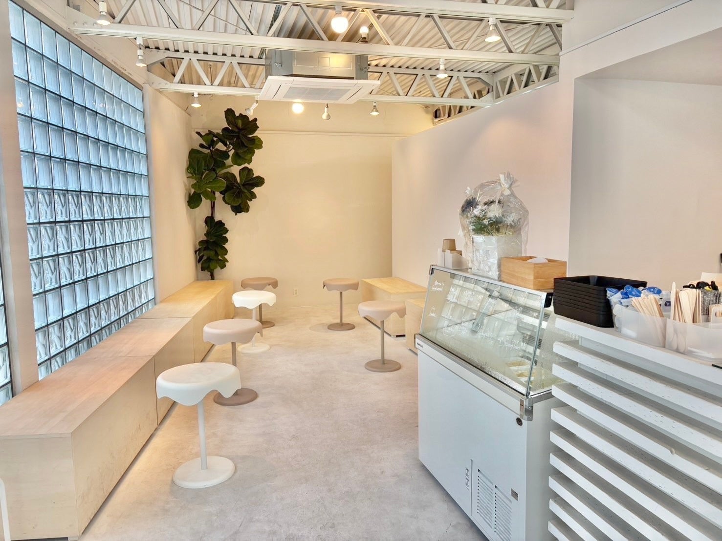 白を基調としたシンプルで開放感のある店内は、焼きたてのクレープの香りに包まれながら、日常に少しだけ特別な時間を添える空間です。
