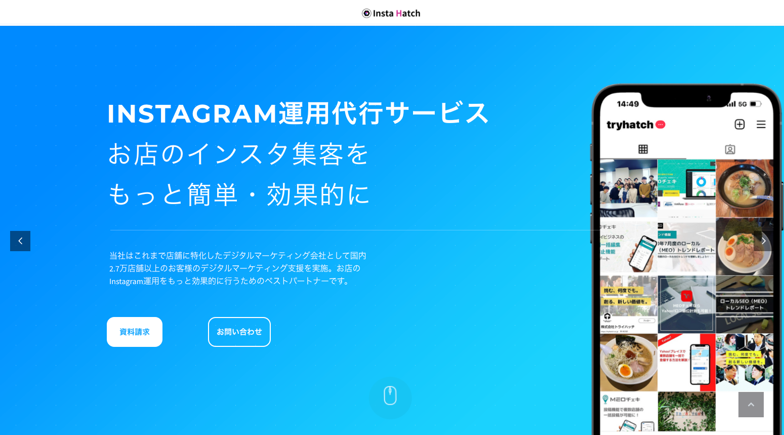 株式会社トライハッチ(所在地:東京都新宿区、代表取締役:武藤 尭行、以下「トライハッチ」)は、店舗に特化したInstagram運用代行サービス「Insta Hatch」をリリースいたしました。