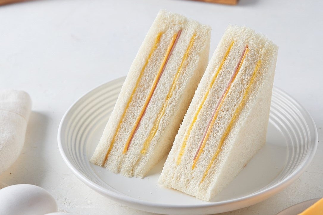 洪瑞珍(ホンレイゼン)の看板商品である、しっとりきめ細かい食パンに甘みの強い自家製マヨネーズにハム、チェダーチーズ、たまごを挟んだ定番サンドイッチ。