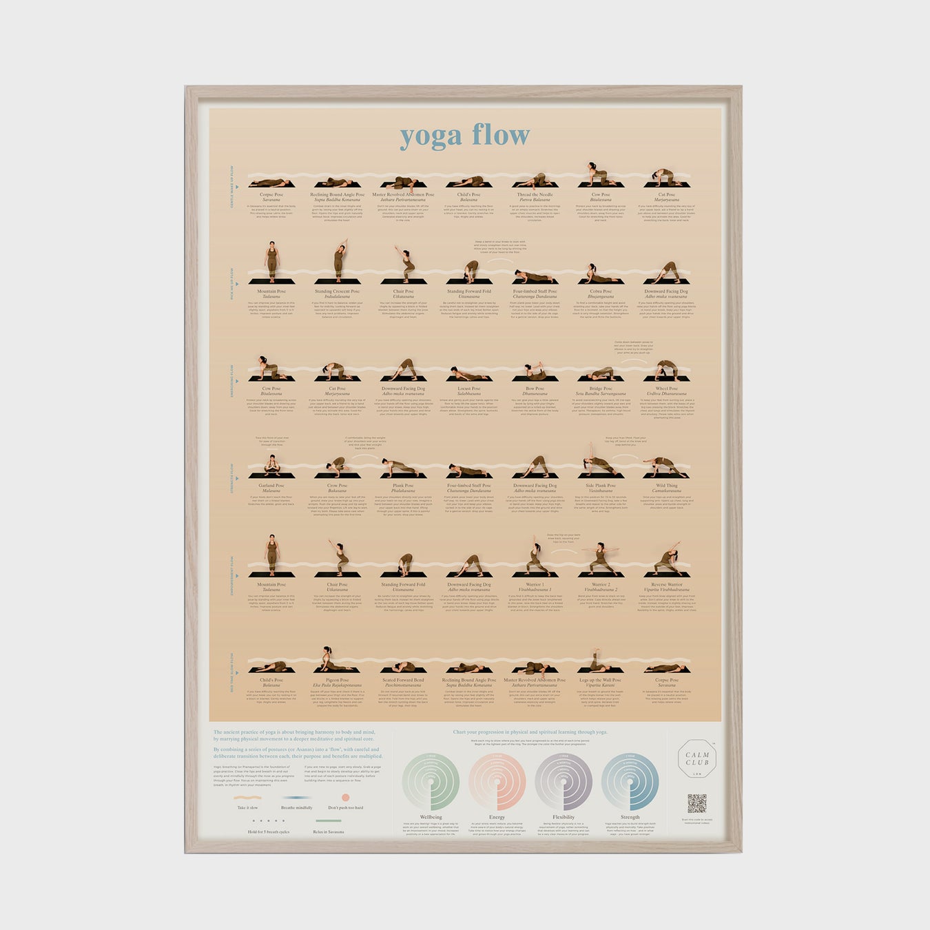 Yoga Flow Poses Posterはヨガの練習をより継続的に効果的にするために、ヨギ必携のアイテムの1つです。