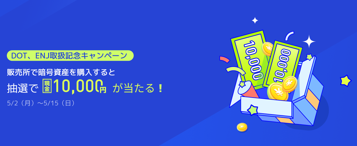 フォビジャパンでは、ポルカドット(DOT)とエンジンコイン(ENJ)の取扱いを記念し、【抽選で現金10,000円が当たる!】DOT・ENJ上場記念キャンペーンを実施いたします。