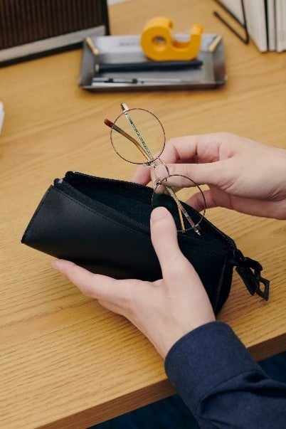 ・メガネケースとしても⼗分に保護してくれる三⾓形のシルエット。