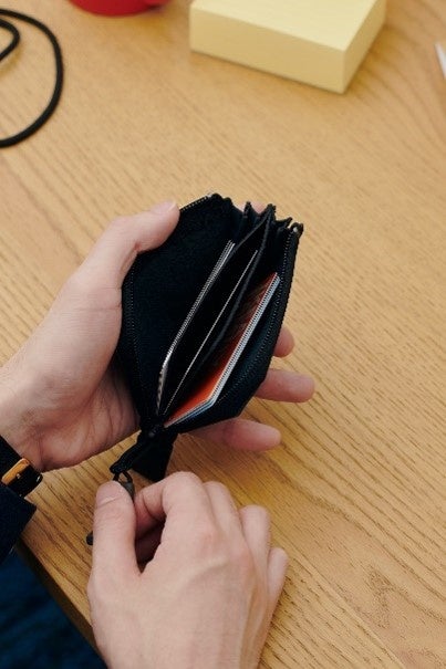 ・スリムながら3気室あり、カードや名刺の整理に便利。
