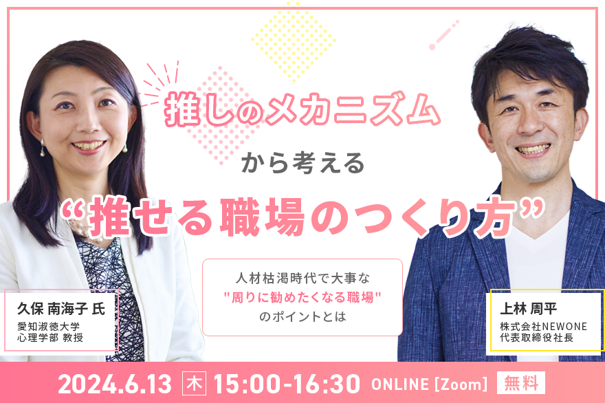 推しのメカニズムから考える「推せる職場」のつくり方~人材枯渇時代で大事な”周りに勧めたくなる職場”のポイントとは~を2024年6月13日(木)15:00よりオンライン開催