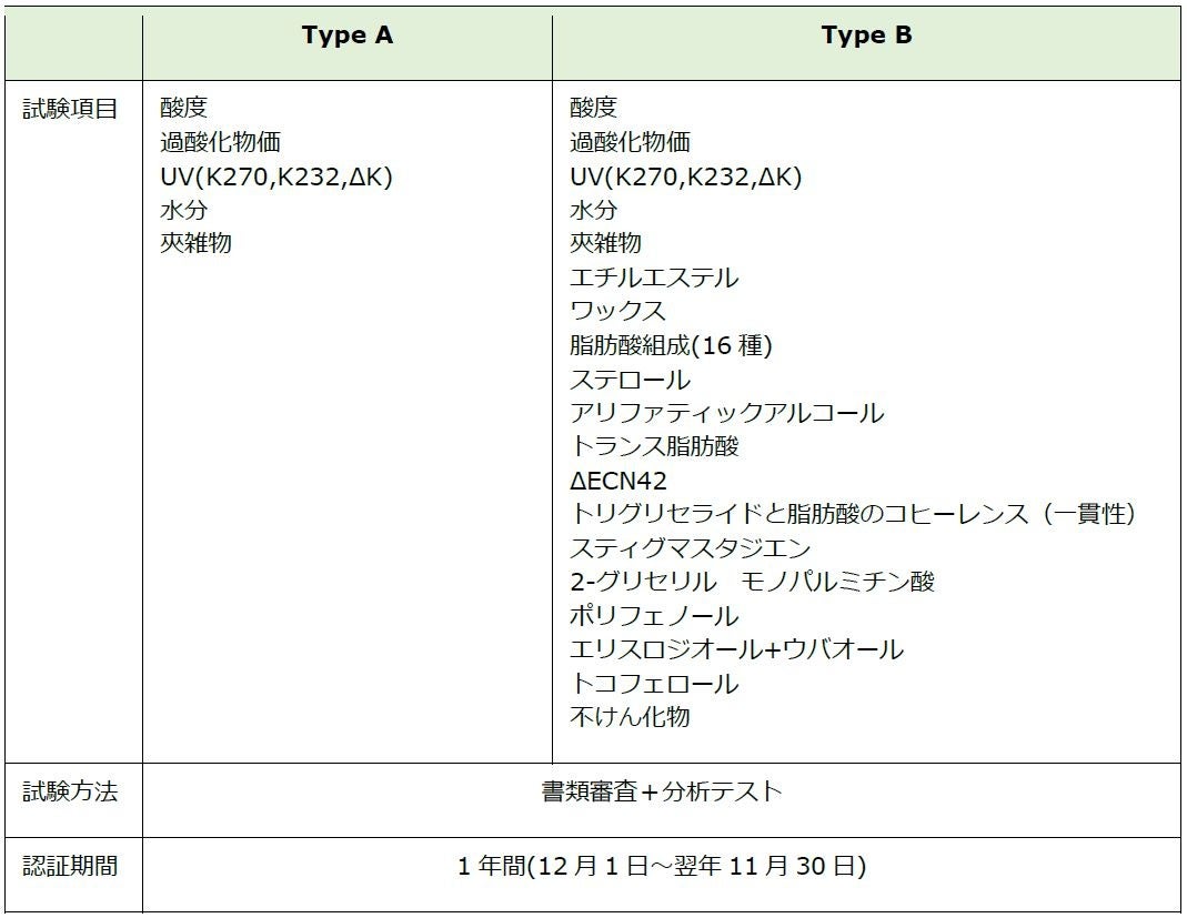 株式会社 J-オイルミルズ(東京都中央区、代表取締役社長:八馬 史尚、以下 当社)のオリーブオイル理化学分析チームは、国際オリーブ協会(International Olive Council、以下 IOC)が認定する「オリーブオイル理化学type B認証(以下、type B認証)」を取得しました。認定期間は2021年12月1日から2022年11月31日までです。