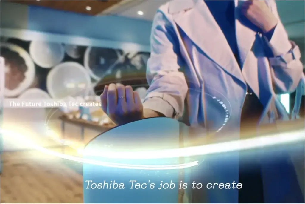映像は、同社の「店舗機器の提供」と「オフィス機器の提供」の2つの事業において、10年後、20年後など、今後どのように「買い物」や「働く」を変えていくのかを伝える構成となっています。