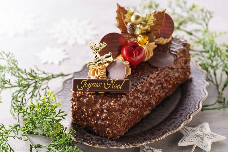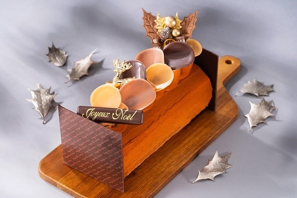 チョコレートの風味をしっかり感じるムースショコラ、くちどけのよいショコラスポンジをはじめ、ほろ苦いキャラメルガナッシュ、ビスキュイショコラ、ココアクッキー生地を重ねたショコラづくしのケーキです。飾りにはロゴ入りのシートショコラ、南京錠型のボンボンショコラ「シャンパンフランボワーズ」、キャラメルホイップにクリスマスらしいトナカイとヒイラギを加え、大人からこどもまで楽しむことができます。ぜひクリスマスの食卓に。