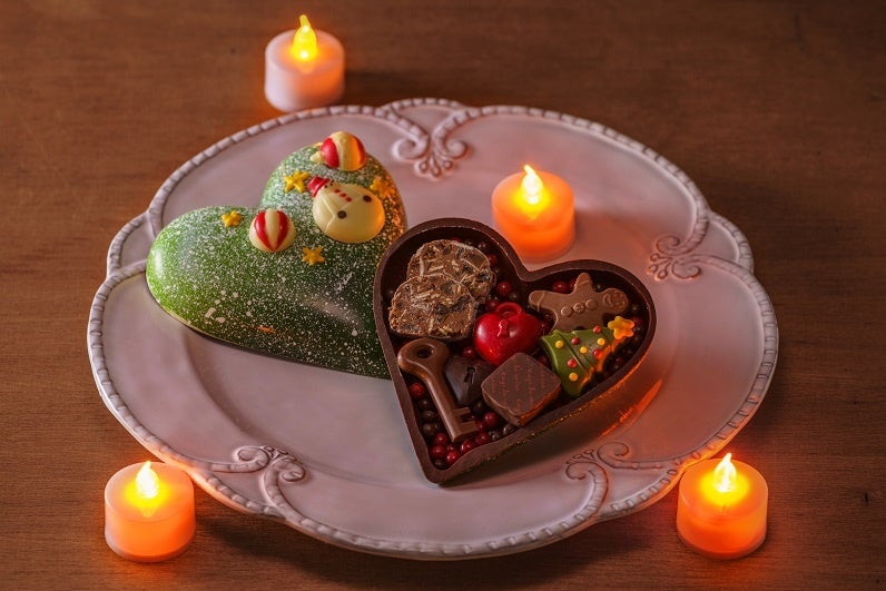 4名在籍するショコラティエがイベントごとにイメージし、お客様へ手作業で届ける「クゥール ド ショコラ」。今年は新作のソーセージ型のチョコ「ソーシーソン」をはじめ、クリスマスシーズンを彩るミルクチョコレートのジンジャーマン、抹茶のクリスマスリース、ロゴマーク入りの定番ボンボンショコラ「ナチュール」、形がかわいい南京錠型のボンボンショコラ「シャンパンフランボワーズ」、カカオ分38%と87.5%の鍵型とハートのタブレットとビターとフランボワーズのパールクラッカンの全9種類を楽しむことができるチョコレートギフトです。ホワイトチョコレートでできた雪だるまをあしらわれたハート型のチョコレートでできた器もまるごと食べることができます。
