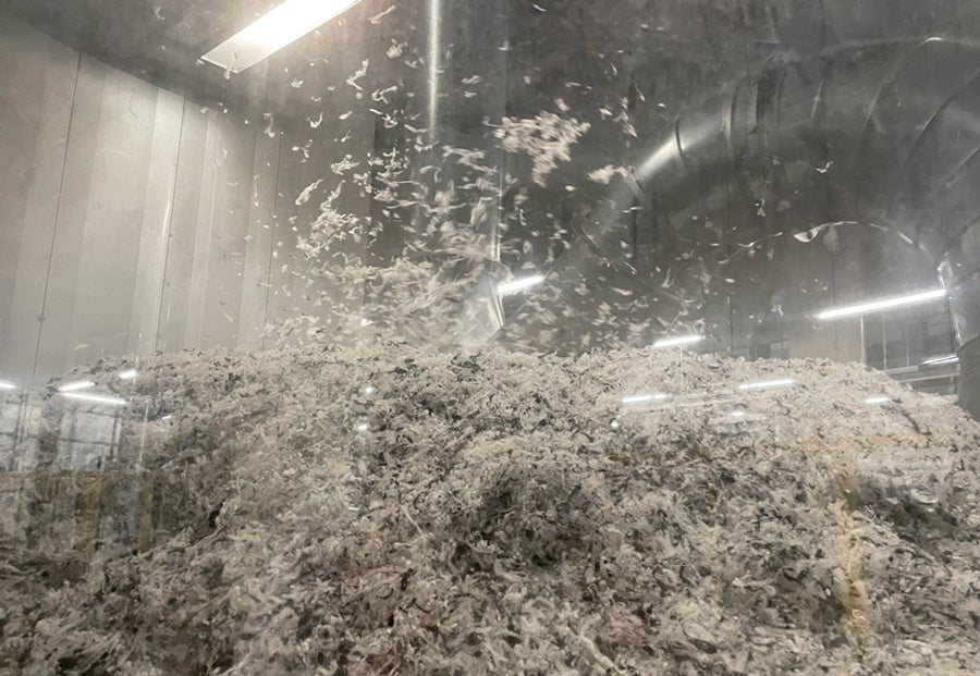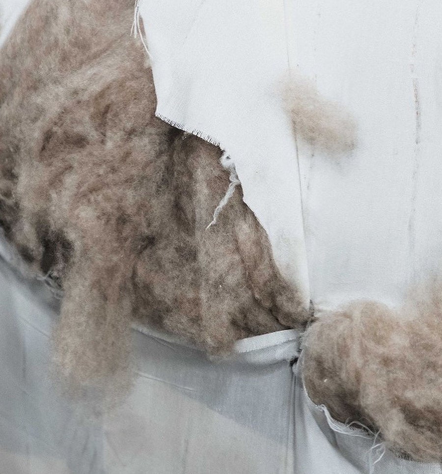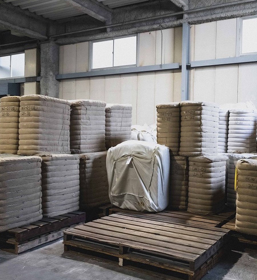 (▲内モンゴルから届いた選び抜かれたカシミヤ原毛。正しい原毛が届いたかのチェックも徹底的に確認されます)