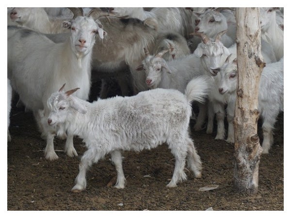 使用しているのは、生後6~12か月未満のホワイトカシミヤの子ヤギ(ベビーカシミヤ)からとれる産毛(うぶげ)だけ。