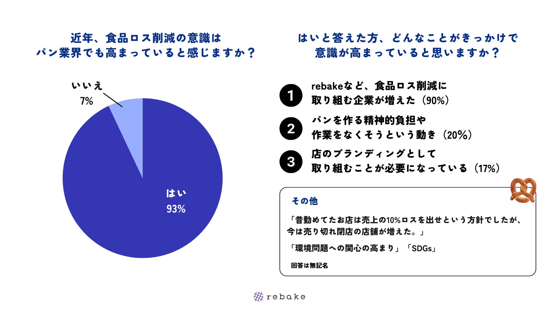 90%以上のパン屋がパン業界全体で食品ロス削減の意識が高まっていると回答。パン屋さんに食品ロスに関するアンケートを実施しました。(rebake)