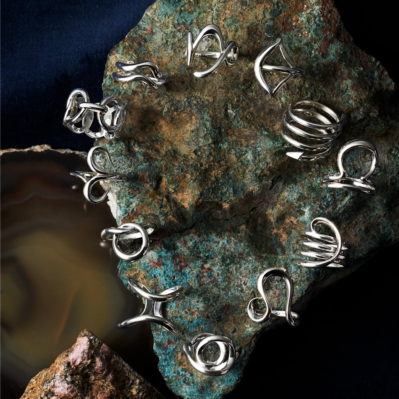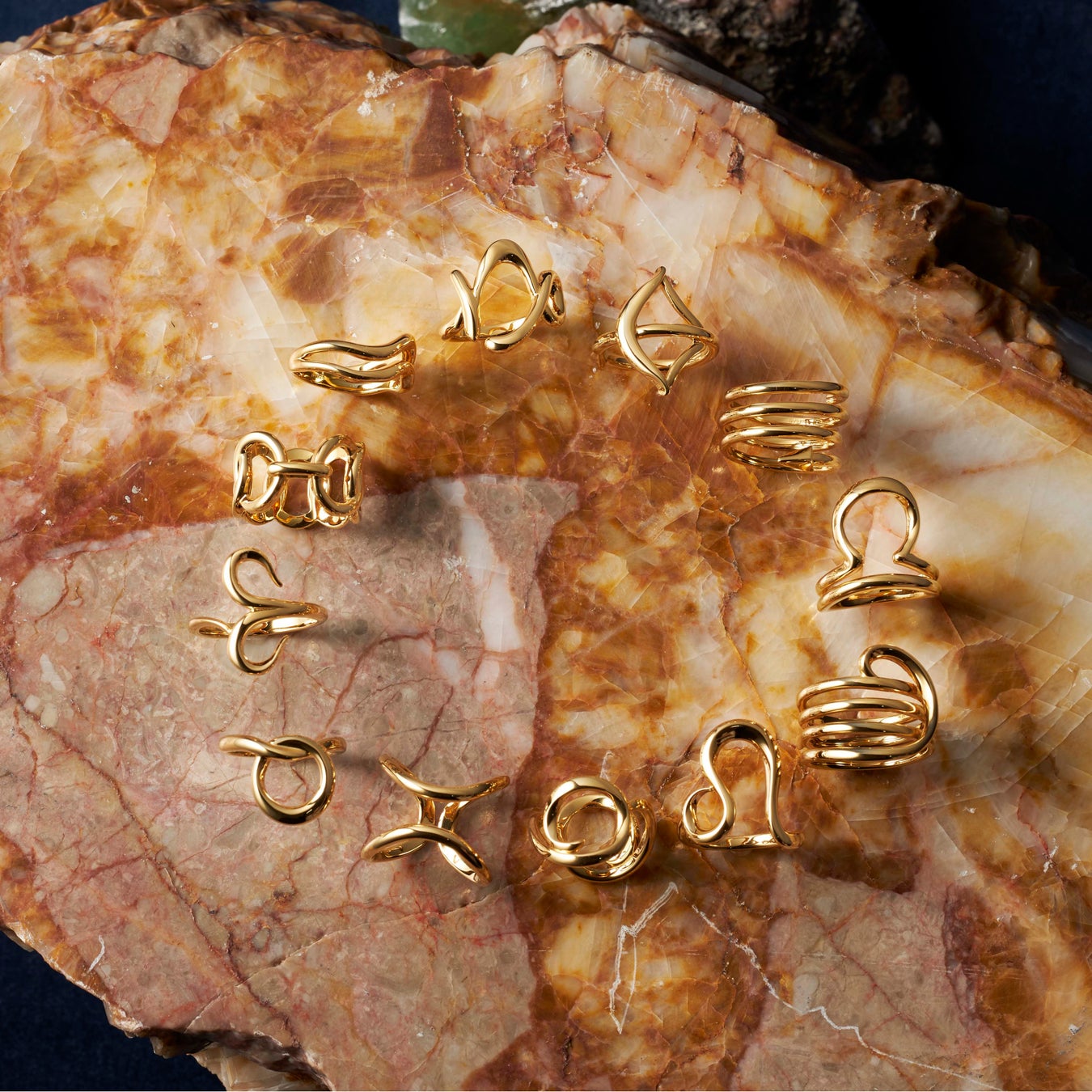 星座記号を大胆にアレンジした、アートピースのようなデザインが特徴です。