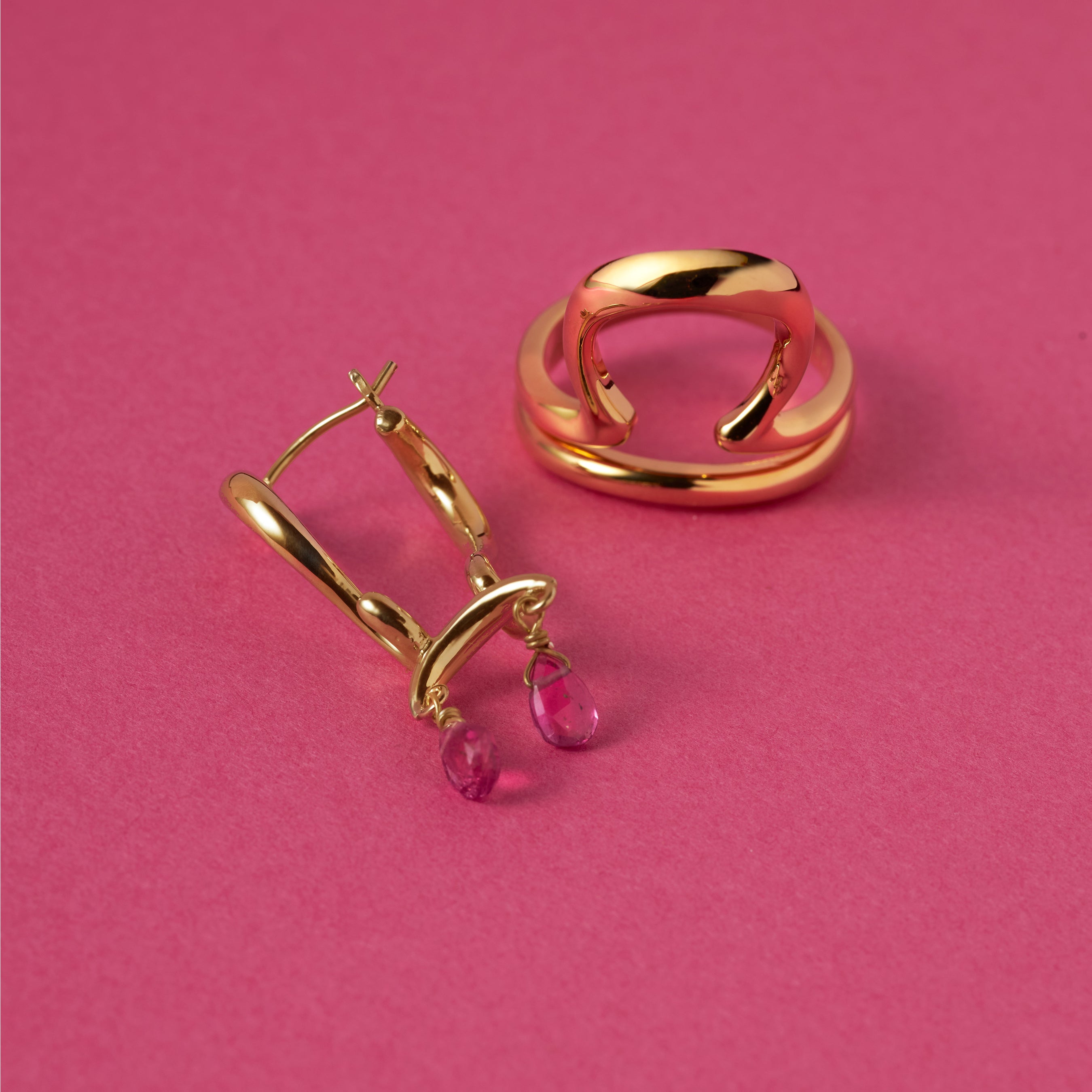 天秤のようにセッティングされたピンクトルマリンが2石輝くデザイン。