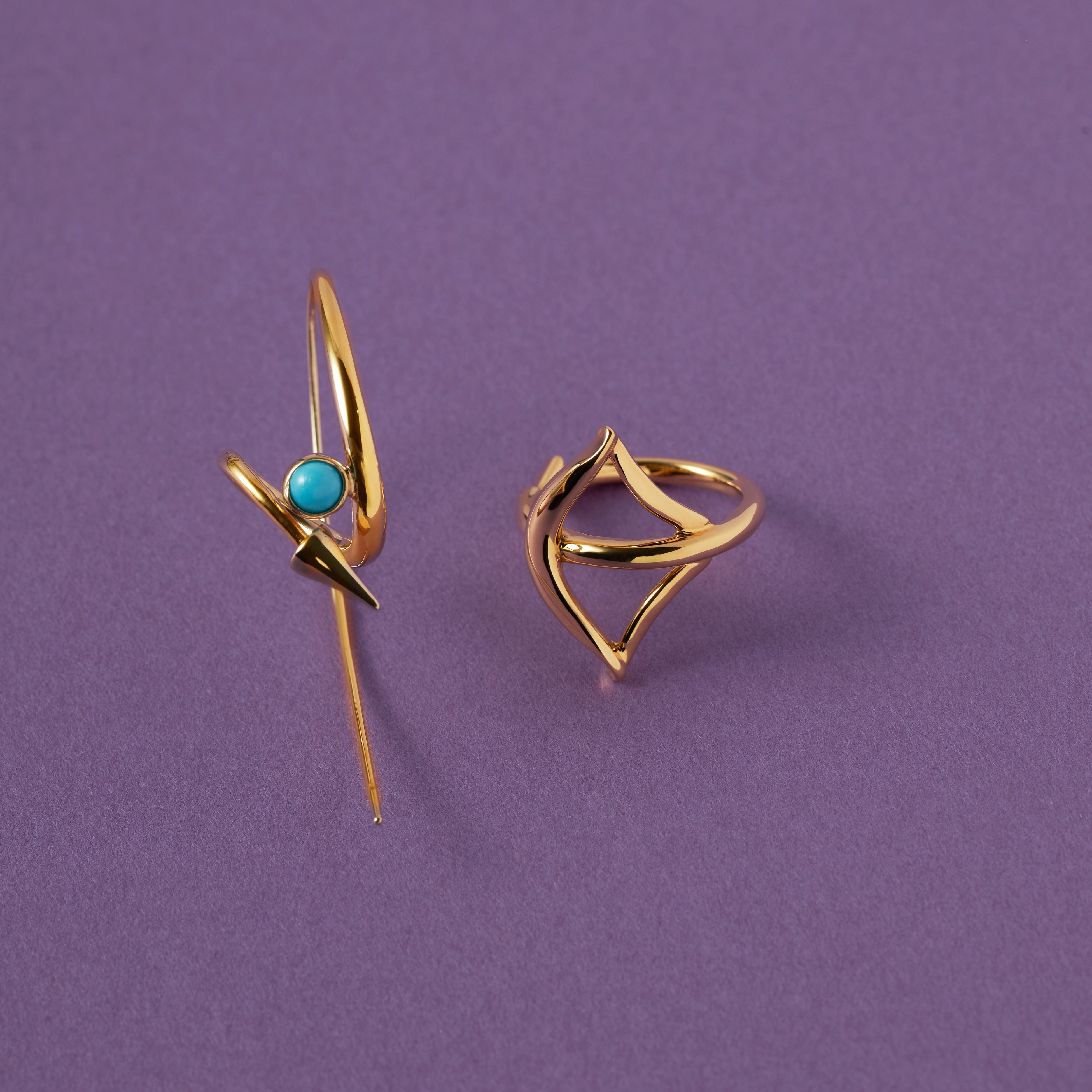 ・ピアス(射手座)<SV925(YGメッキ)/ターコイズ> ¥14,300