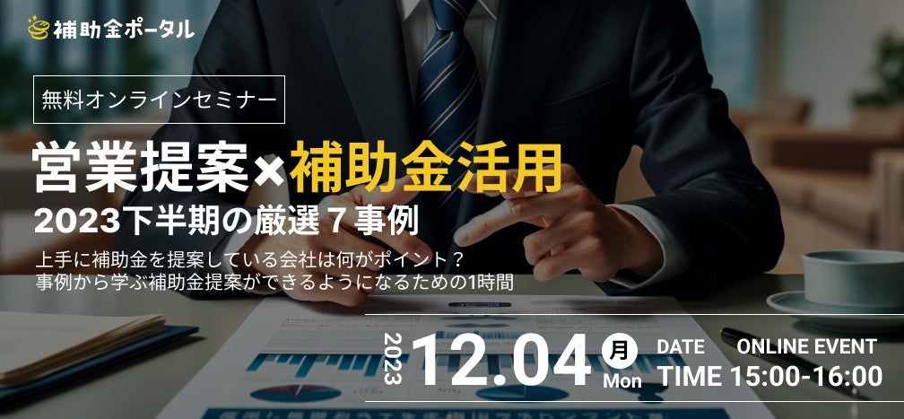 【無料オンラインセミナー】営業提案×補助金活用 2023下半期の厳選7事例