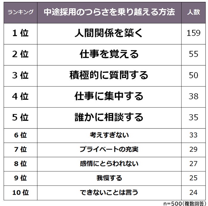 中途採用のつらさを乗り越える方法1位は「人間関係を築く」