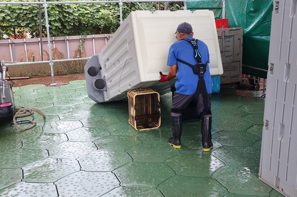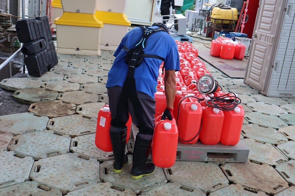 こうした需要の増加に応えるべく、効率的な供給を目指して重機の活用を進め、人力作業の軽減に取り組んでおりますが、例えば80㎏もの重量がある仮設トイレの設置や、20リットルのポリタンクの運搬といった作業には依然として人の力が必要です。そのため、現場で働く方々にかかる身体的負担、特に腰への負担が課題となっていました。従事者の減少と高齢化が進む中、マッスルスーツを積極的に活用いただき、作業者の身体的負担の軽減と労働環境の改善に努めてまいります。これにより、従業員の安全を確保すると同時に、業務効率の向上を図り、今後の需要に持続的に対応していく所存です。