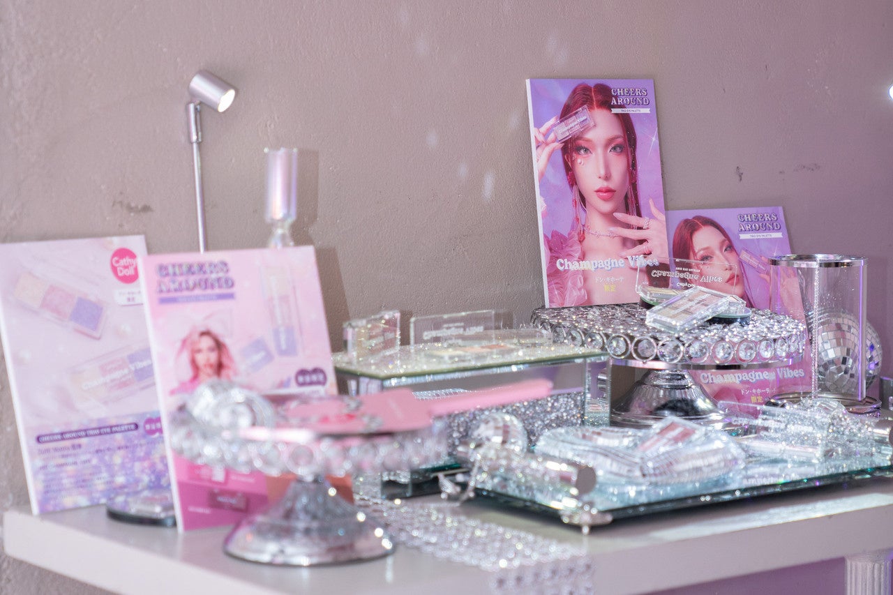 シャンパンで乾杯するシーンから着想を得た、キャシードールの新色ラメアイシャドウ発表会を開催