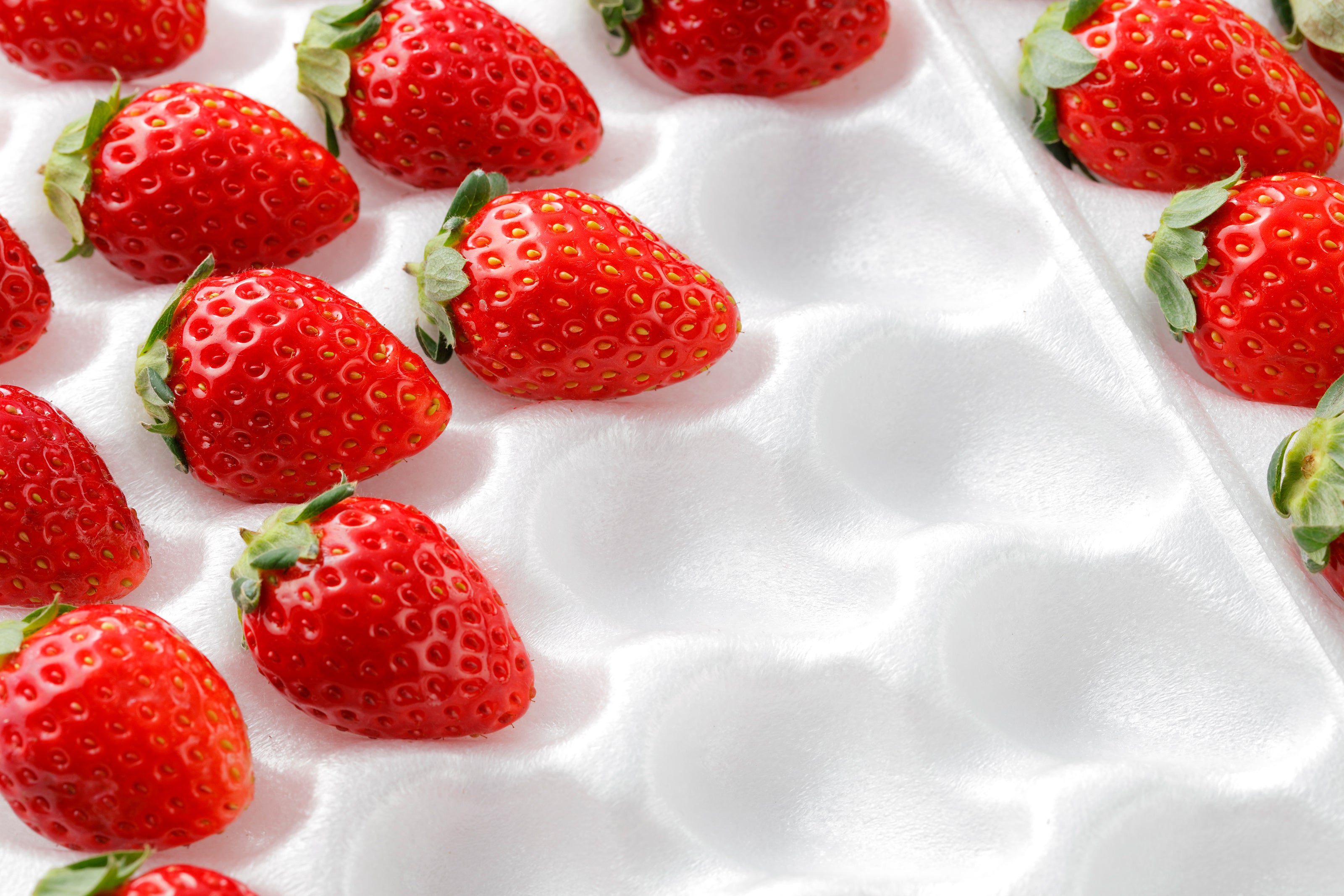 いちごデザートフェアで使用されるいちごは、時期によって最も美味しい品種を選定しています。味、香り、つや、色の濃さなど独自の基準を設け、びっくりドンキーのソフトクリームとの相性の良さも考えています。また、輸送する際にはいちご同士がぶつからないように一粒ずつ仕切りを設けた専用のトレーで細心の注意を払って梱包し、各店舗へ配送しています。びっくりドンキーではこのような徹底した品質管理のもと、お客様へ美味しい“いちご”を提供しています。