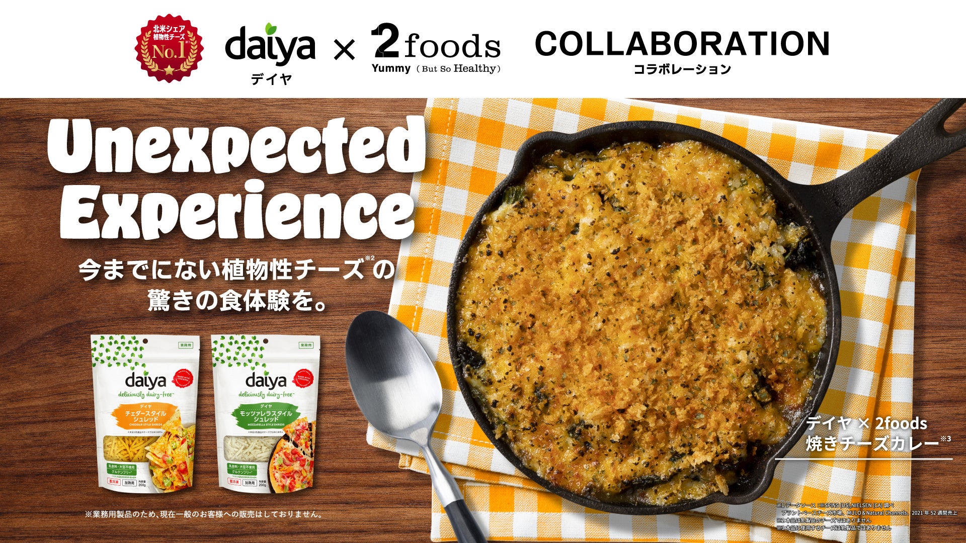 プラントベースフードブランド「2foods」、日本初上陸のカナダで生まれた北米No.1シェア※1植物性チーズ※2「デイヤ」とコラボ!「デイヤ×2foods焼きチーズカレー」1月10日より期間限定で登場