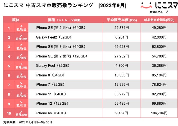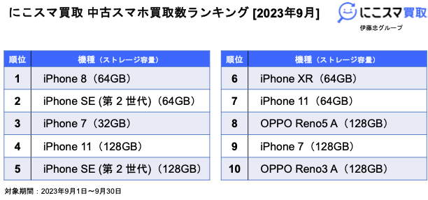 にこスマ|2023年9月中古スマホ販売・買取数ランキング