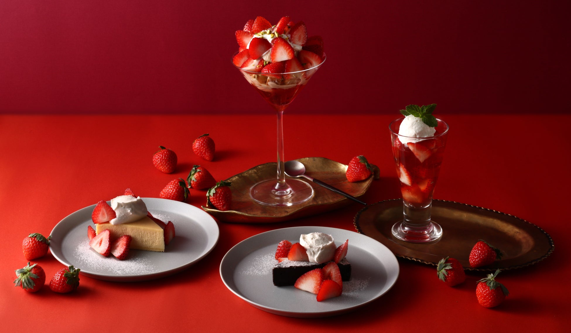 定番スイーツのガトーショコラやチーズケーキに、うきは市直送の真っ赤な「あまおう」とホイップクリームを合わせた、華やかな“ごほうび”デザート2種類もお楽しみいただけます。