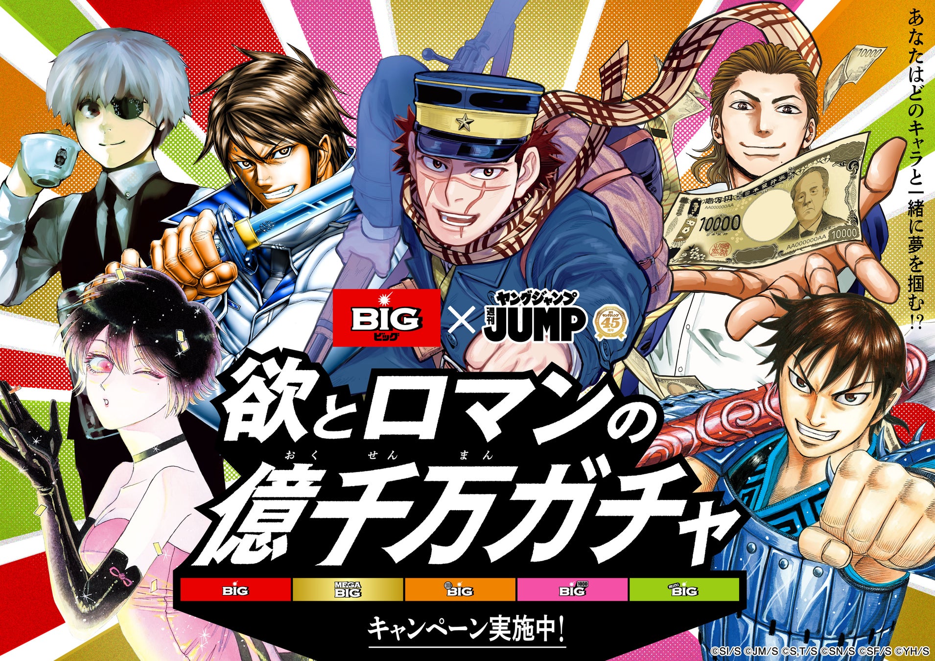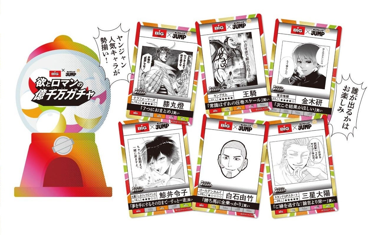 スポーツくじBIGと「週刊ヤングジャンプ」人気キャラクターが初コラボ BIG×「週刊ヤングジャンプ」創刊45周年「欲とロマンの億千万ガチャ」キャンペーン