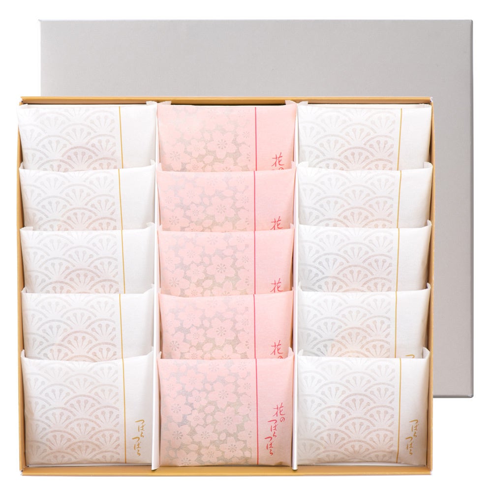 その「つばらつばら」を春限定アレンジした「花のつばらつばら」は、これまで京都地区百貨店および公式オンラインショップ限定でお取り扱いさせていただいておりました。本年からは一部意匠を変更し、鶴屋吉信の本店・直営店をはじめ全国の各百貨店・公式オンラインショップに拡大して発売いたします。昨年からリニューアルされた桜意匠のパッケージで、お詰合せも華やかに。出会いと旅立ちの春、ご贈答にぜひご利用いただきたい一品です。