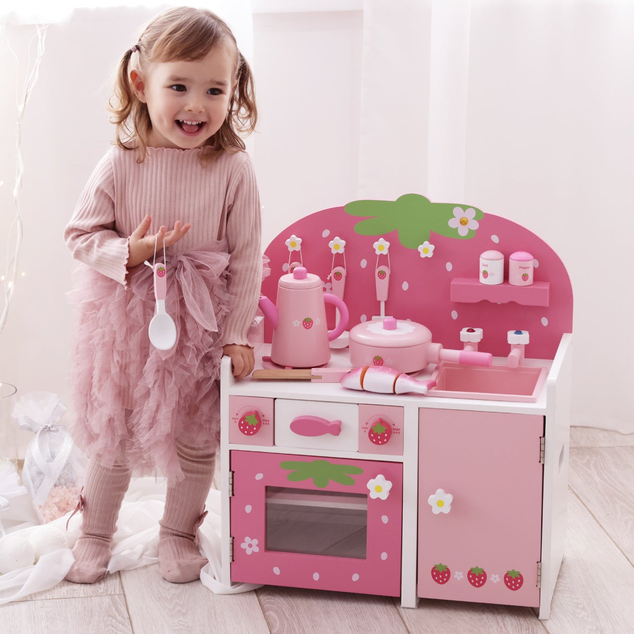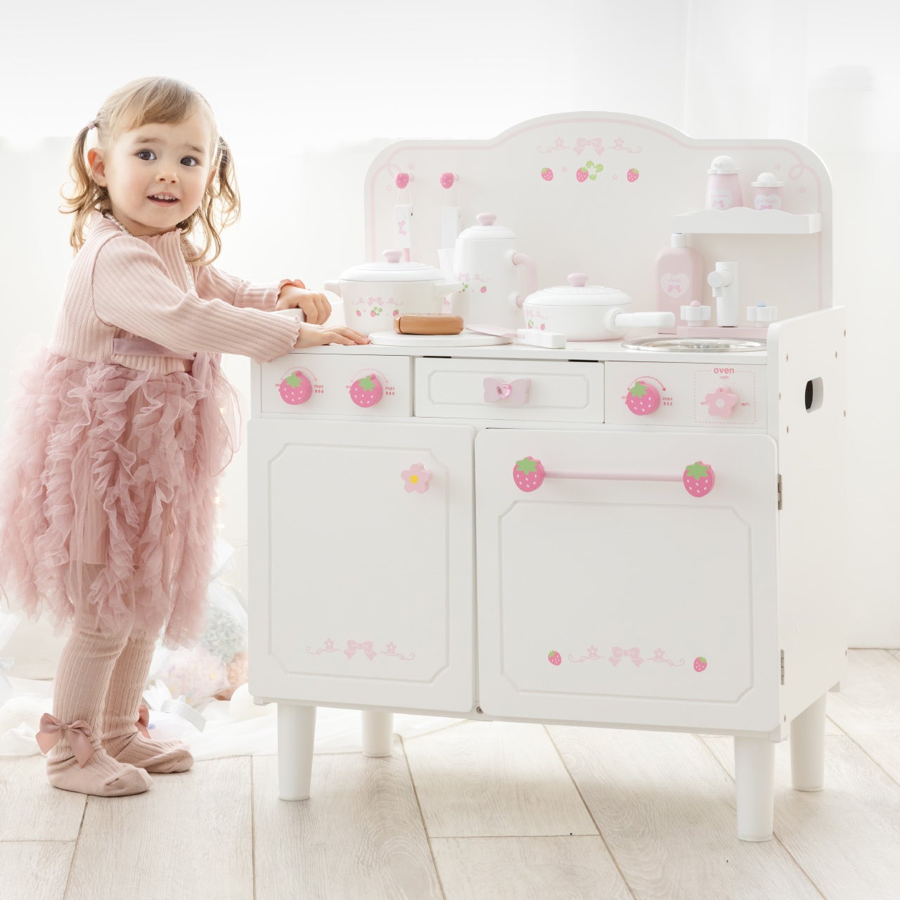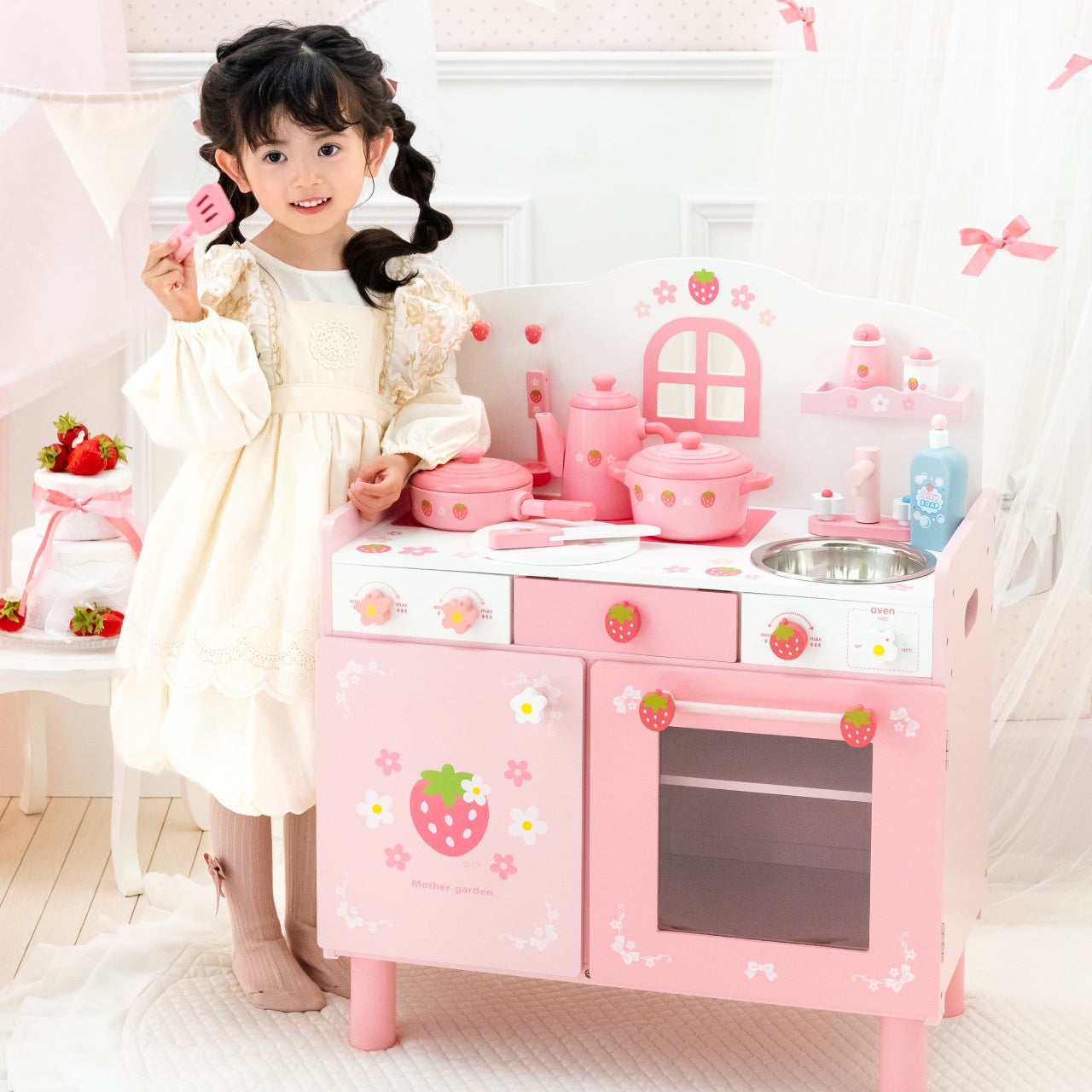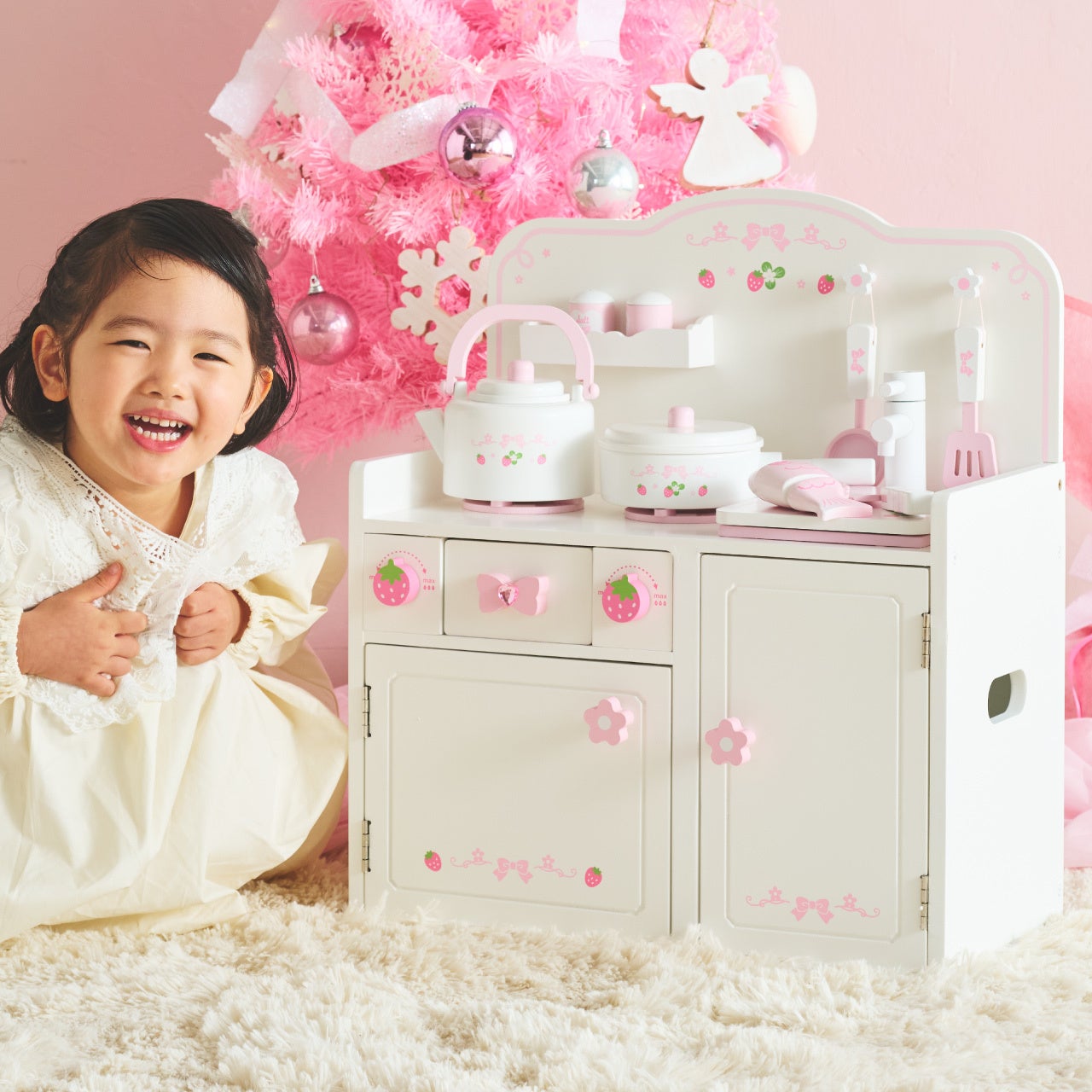『マザーガーデン』のおままごとキッチンシリーズは、「幼少期にこそ良質な模倣遊びを体験してほしい」という思いから販売をスタートしました。木製ならではのぬくもりや手触りが支持され、2003年の発売以来ロングセラー商品となっています。特に白やピンクを基調とした“野いちご”シリーズが人気で、多くのご家庭で親しまれています。