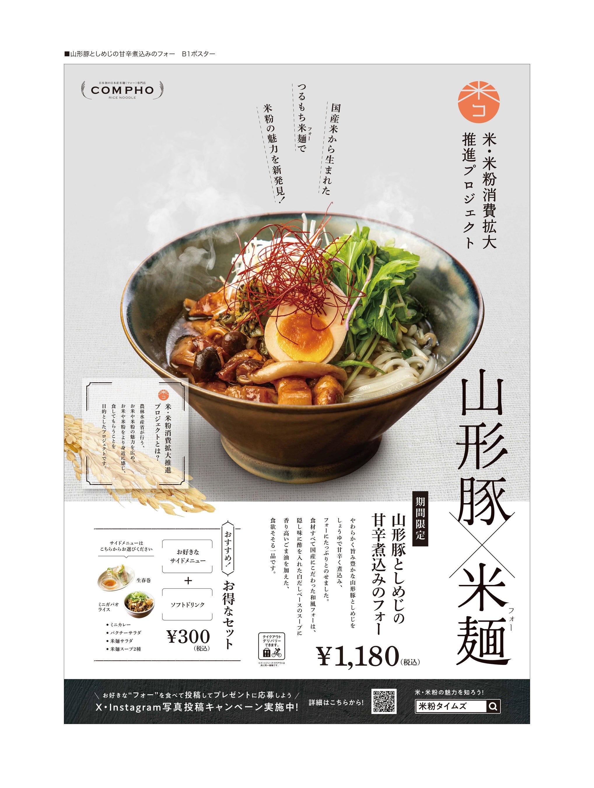 また、農林水産省が行う「 米・米粉消費拡大対策事業 」の一環として実施される、米粉の魅力新発見!全国各地の飲食店で米粉料理が食べられる「 米粉を使ったメニューフェア 」の賛同商品です。期間中に「 山形豚としめじの甘辛煮込みのフォー 」を含む賛同商品を食べてX・Instagramに写真を投稿すると抽選で豪華景品が当たるキャンペーンも実施されます。
