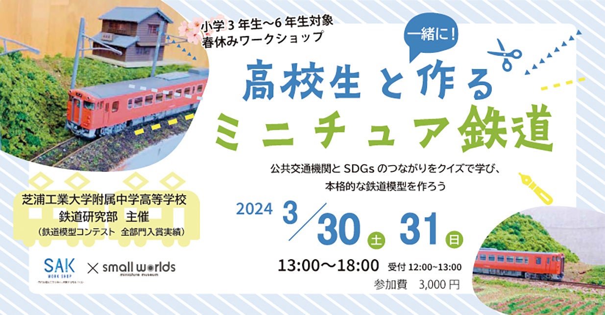 芝浦工業大学付属中高等学校の鉄道研究部と一緒に「公共交通機関×SDGsのクイズと鉄道模型作成」ができる小学生向け春休みワークショップをSMALL WORLDS Miniature Museumで開催!
