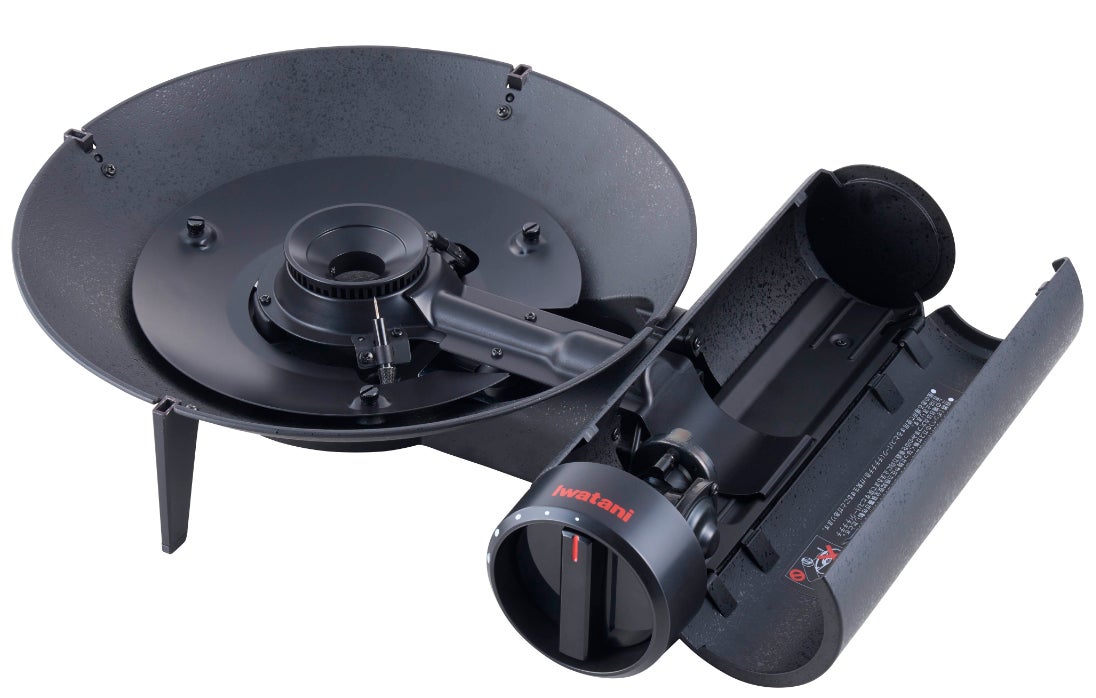 パイオニアに相応しい、「脱・箱型」を革新的に実現したハイエンドモデル。今までの箱の中身はどうなったのかと不思議なほどの生まれ変わりように、爽快さを覚える。五徳と脚が一体となり、盃状のボディを軽やかに支える様は、従来のカセットコンロとは全く別の存在感だ。火がある食卓は豊かなものだが、その炎の美しささえ際立って感じられるような製品である。
