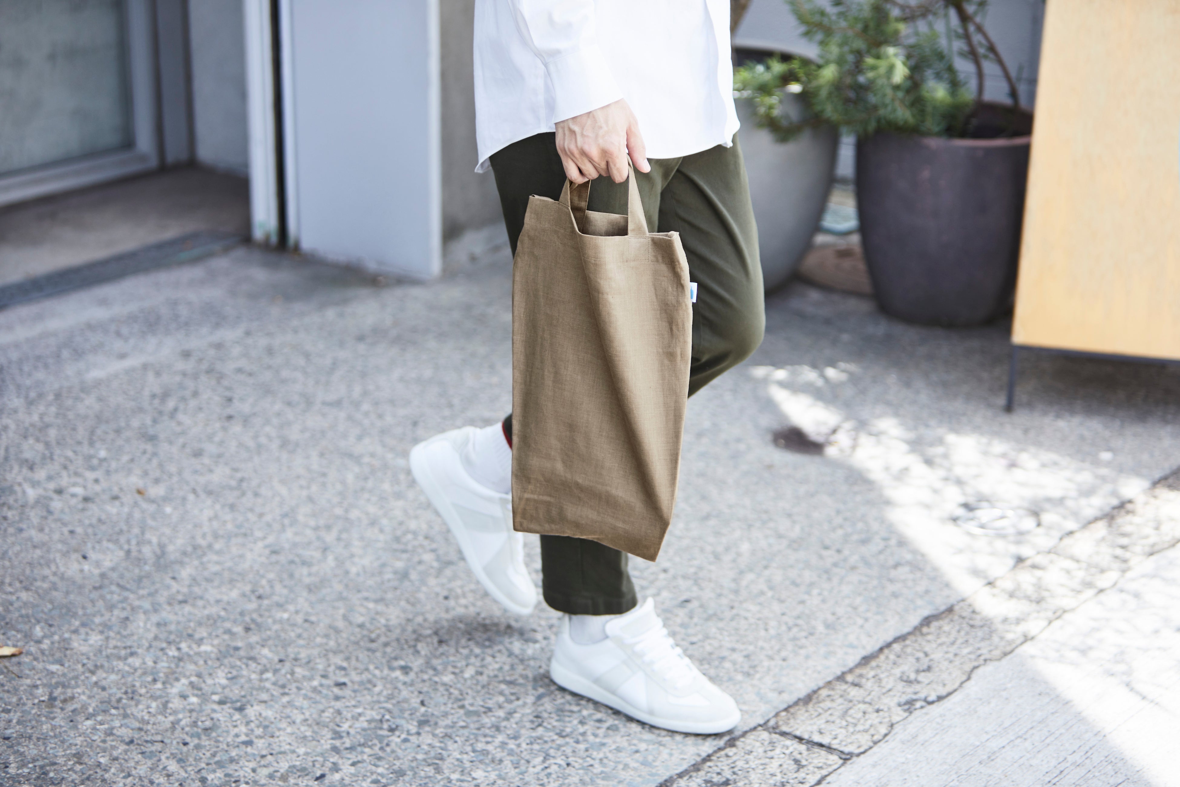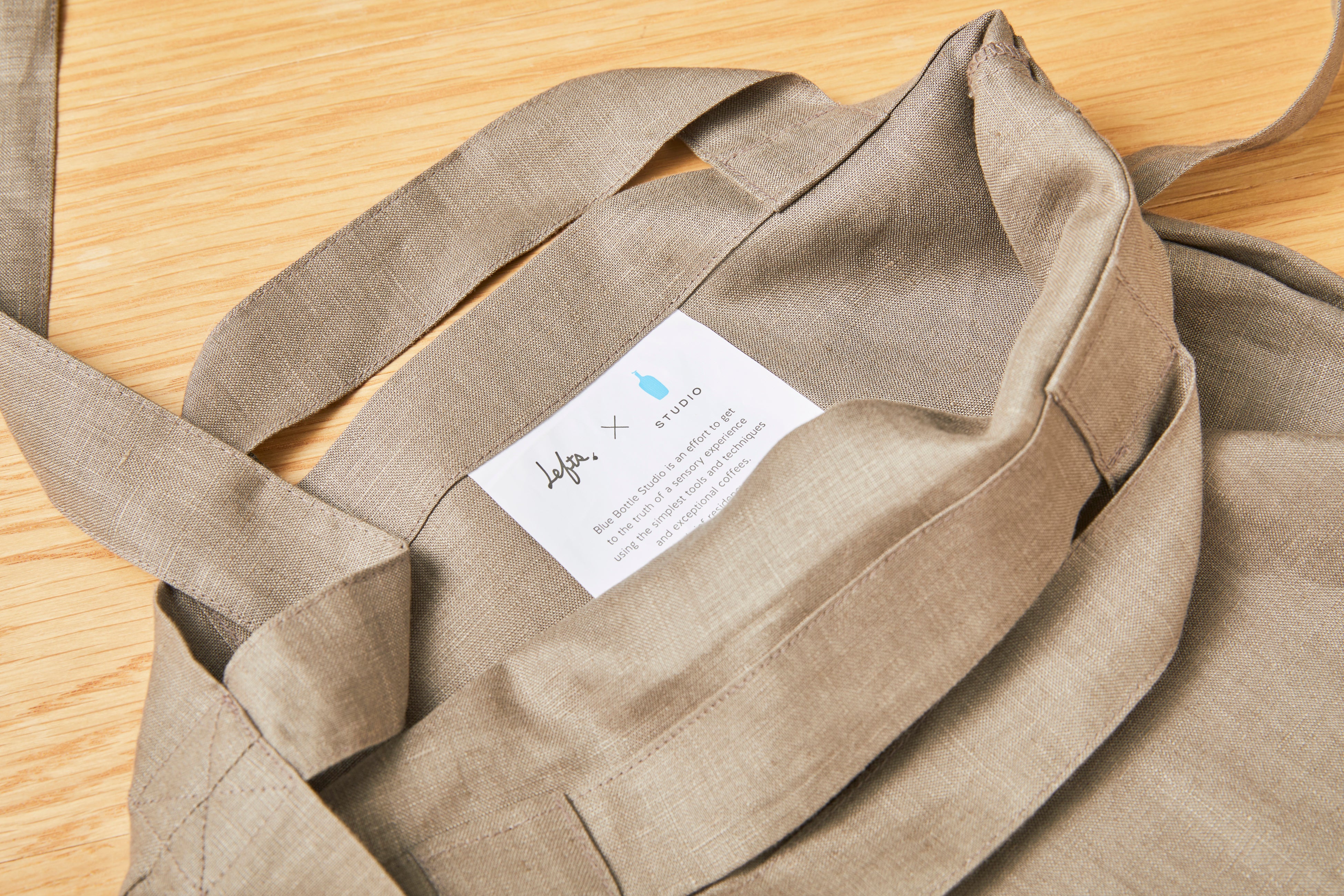 100%ボタニカルダイのエプロンやバッグなどのライフグッズを手がけるLefts,(レフツ)とコラボレートした「ブルーボトル スタジオ トートバッグ」。残反(布製品が作られるときに出る端切れ)がなるべく出ないようなパターンメイキングにこだわり、Blue Bottle Studio - Kyoto - のバリスタのトレーニングで出たコーヒーの抽出殻を使って染めたトートバッグです。Lefts,のユニークな形状のトートバッグをベースに、短いハンドルと長いショルダーストラップがついた2通りの使い方ができる、ブルーボトルコーヒー オリジナルデザインとなっております。落ち着いた色合いやシンプルさが日々のシーンに溶け込み、心地良い手触りと使い心地で長くご愛用いただけるアイテムです。