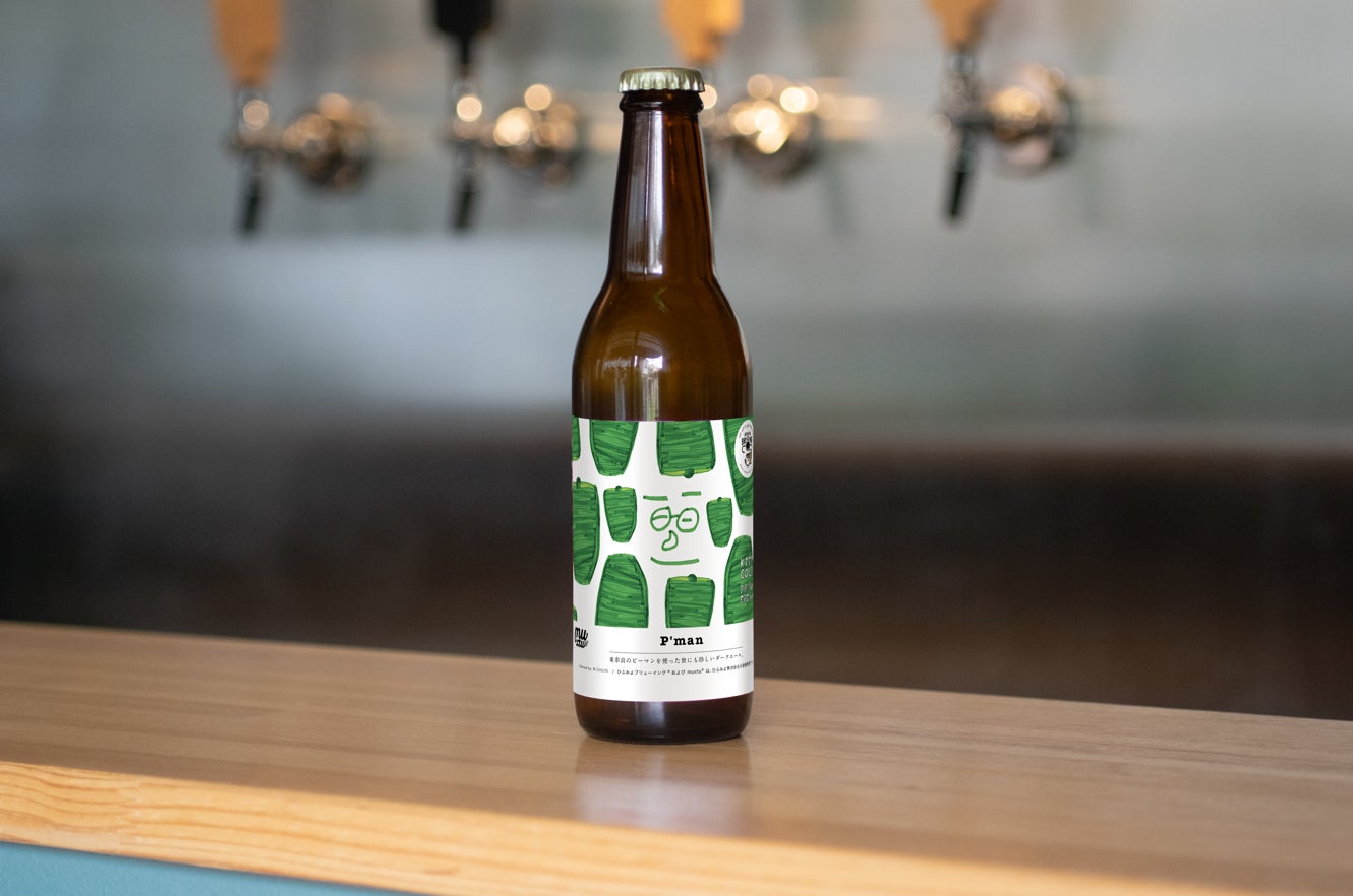 AGRIST FARMで栽培されたピーマンは、黒ビールベースのクラフトビール「P'man(ピーマン)」に使用されています。ピーマンの苦みを活かした味が特徴で、通常の黒ビールより非常に飲みやすく、コクと芳醇な香りも楽しめます。ラベルにはhifumiyo.artist所属の「N-Sinichi」のアール・ブリュットをジャケットとして採用し、社会的なつながりをより感じさせる製品となっています。