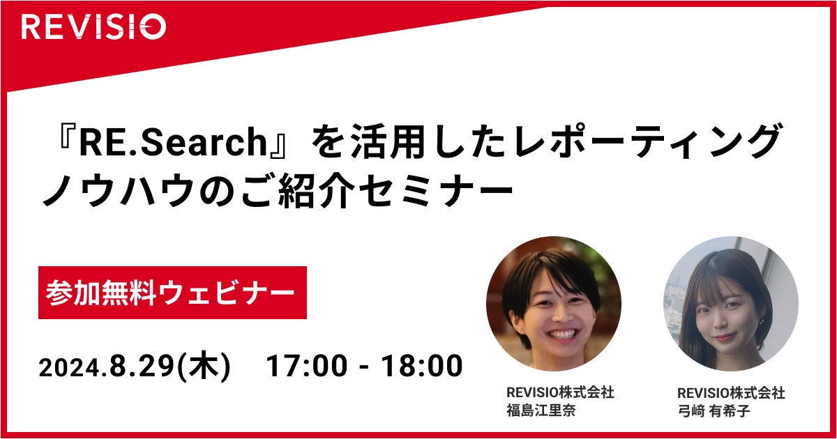 ご家庭に人体認識技術を搭載した機器を設置し、テレビスクリーンへの「注視」を測るREVISIO株式会社(旧TVISION INSIGHTS、本社:東京都千代田区、代表取締役社長 郡谷康士、以下REVISIO)は、8月29日(木)17時より「『RE.Search』を活用したレポーティングノウハウのご紹介セミナー 」と題した無料ウェビナーを開催することをお知らせ致します。
