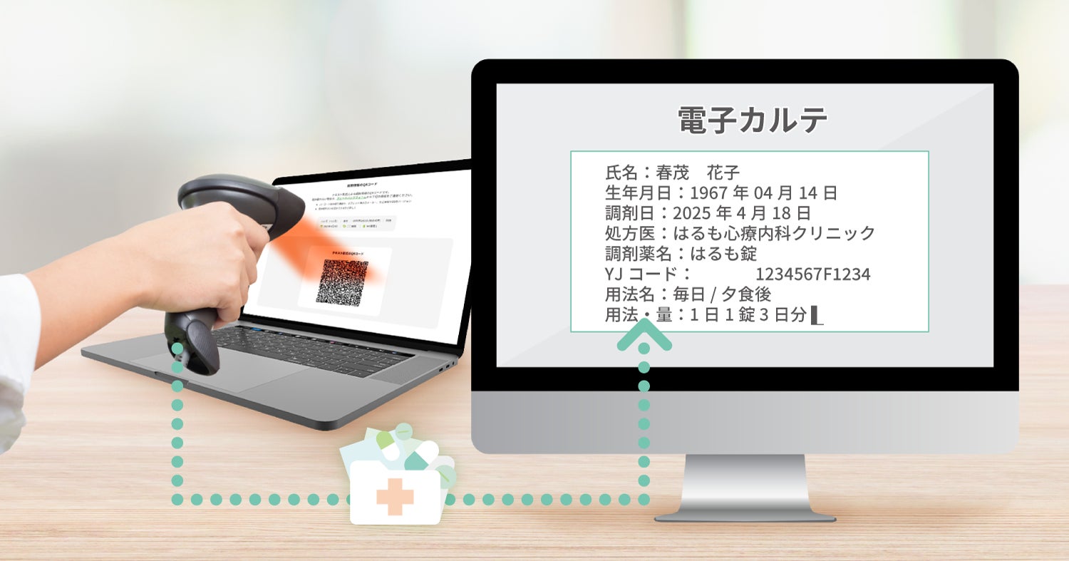 バーコードリーダーを活用し、電子版お薬手帳の薬剤情報を電子カルテへ手入力なしで転送可能です。これにより、転記ミスの防止と業務効率の向上が期待できます。