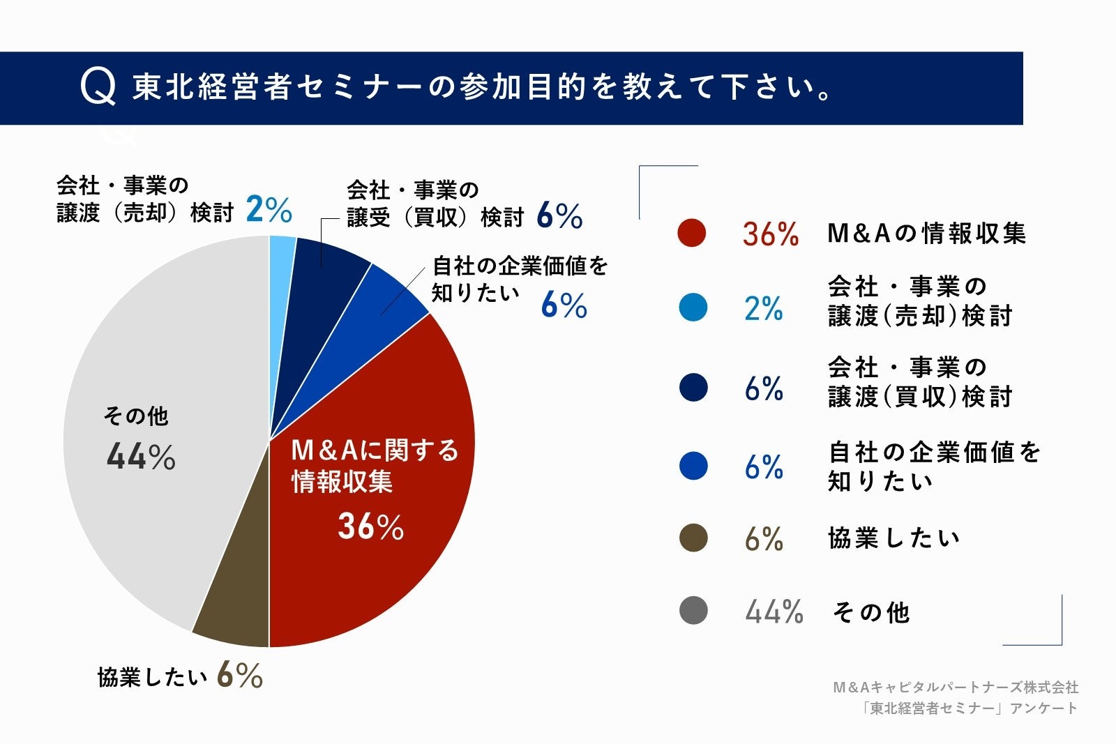 今回、東北6県で累計約1,000名の方に聴講いただき、ご来場者アンケートから「M&A」に関する情報収集ニーズがわかり、今後も全国で「経営者フォーラム」を開催いたします。