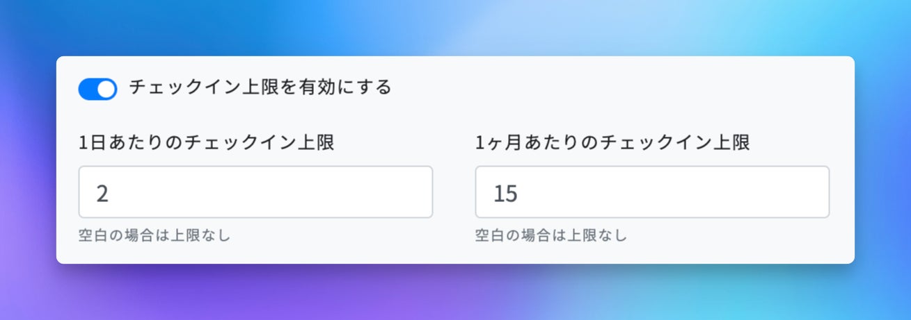 1日・1ヶ月のチェックイン上限を設定可能に。