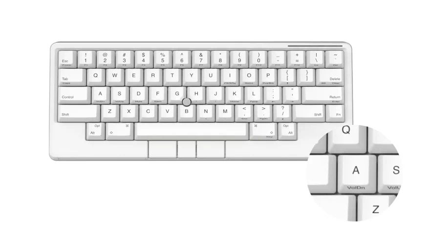 お客様のスタイルや好みに合わせた選択やカスタマイズを可能にすべく、この度、新色「雪」モデルの販売を開始します。コンパクトサイズはそのままに筐体は真っ白な雪色をベースにホワイトシルバーのアクセントを施し、より一層洗練されたデザインを実現しました。クリエイティブな作業に没入できるよう、真っ白なキートップにノイズにならない「クールグレー」の印字色を初採用。耐久性の高い昇華印刷を施しています。