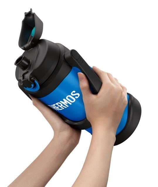 『サーモス 真空断熱スポーツジャグ(FJQシリーズ)』は、新構造「ラク持ちハンドル」の搭載により、大容量ながら支えやすく、飲みやすさを向上させたスポーツジャグです。「ラク持ちハンドル」では、ハンドルの段差に指をかけ、両手でしっかりと握って本体を支えられる構造により、水分補給時の負担を軽減します。また、片手でハンドルを握りながら、もう片方の手でソコを支えるなど、利用者の好みに応じて様々な持ち方に対応した設計となっています。