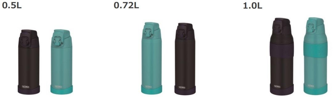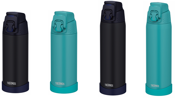 『サーモス 真空断熱スポーツボトル(FJRシリーズ)』は、スポーツシーンでの使用に合わせて開発された、軽量・コンパクトモデルのスポーツボトルです。今回のリニューアルでは、性別・年齢を問わず、より幅広い方にお使いいただけるよう、デザイン/カラーを一新。デザイン面では、ボトルの底を衝撃から守るシリコーン製のソコカバーと握りやすさを向上させるボディリング(FJR-1000のみ)を、よりスタイリッシュなデザインに変更しました。カラーは、落ち着いたネイビーを基調とした幅広い年代で使用できる「ミッドナイトブルー」、そして男女ともに使いやすい「ターコイズ」の2色をラインアップしています。