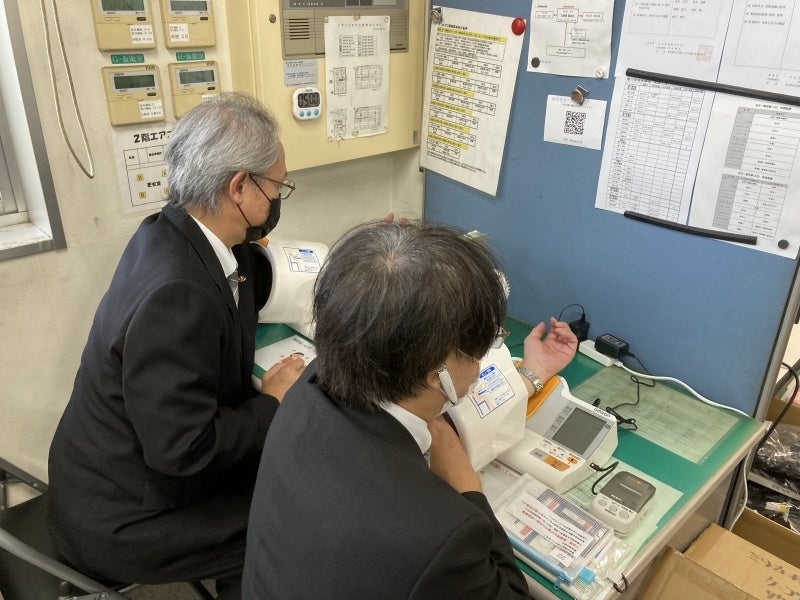 タクシー乗務員は不規則な食生活により血圧が乱れやすく、コントロールが難しい環境にありますが、高血圧は脳梗塞などの運転の支障に繋がる恐れがあります。日本交通は、「乗務員の健康なくしては、安全な運行は成しえない」という考えのもと、全社横断的な健康増進施策を進めており、その一環として高血圧者の二次健診の受診促進、乗務前の血圧測定など対策進めています。