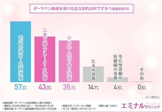 ダーマペン施術を受ける主な目的として「毛穴の開き・肌質改善」が最多に