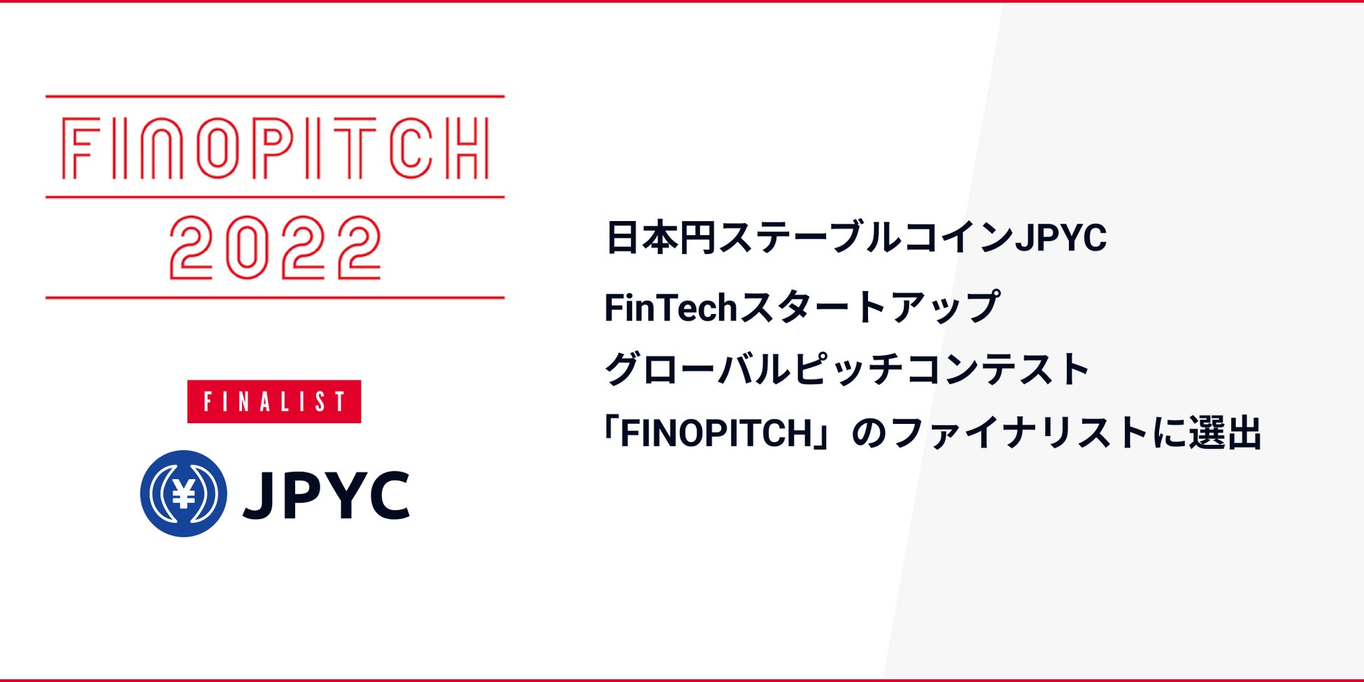 日本円ステーブルコインJPYC、FinTechスタートアップ グローバルピッチコンテスト 「FINOPITCH(フィノピッチ)」のファイナリストに選出