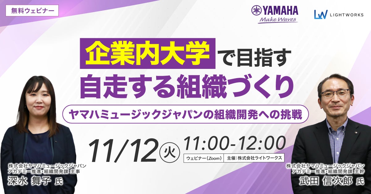 【11/12 無料ウェビナー開催】企業内大学で目指す「自走する組織」づくり~ヤマハミュージックジャパンの組織開発への挑戦~
