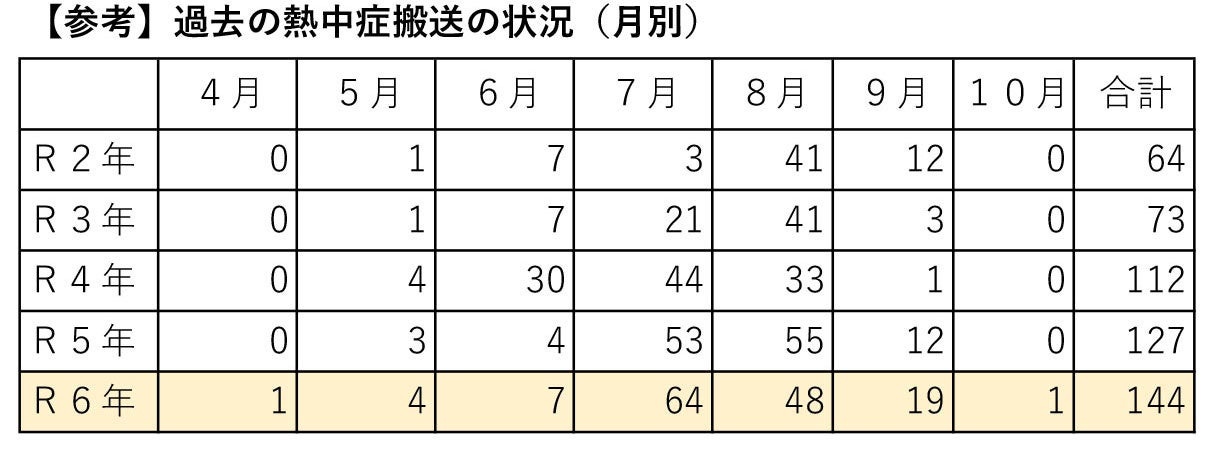 熱中症に関しては全国的に暑さに慣れていない7月の方が8月より救急搬送が多い傾向があり(※2)、それは会場のあるひたちなか市でも同様です。